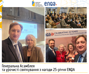 22–24 жовтня Голова Національного агентства Андрій Бутенко та заступниця Голови Наталія Стукало беруть участь у Генеральній Асамблеї та святкуванні 25-річчя Європейської асоціації із забезпечення якості вищої освіти (ENQA). Головною темою заходу стало формування майбутнього системи забезпечення якості.
