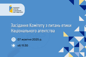 07 жовтня об 11:30 відбудеться засідання Комітету з питань етики Національного агентства щодо розгляду скарги Смірнова О. Ю. щодо наявності фактів академічного плагіату в дисертації кандидата медичних наук Волошинович Н. С.