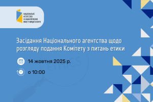 14 жовтня 2025 року відбудеться засідання Національного агентства щодо розгляду подання Комітету з питань етики про наявність фактів порушення вимог з питань текстових запозичень без посилання на джерело (академічного плагіату) у дисертації кандидата медичних наук Молодіченка Максима Сергійовича «Оптимізація методики малоінвазивної хірургії у жінок з трубно-перитонеальним безпліддям»