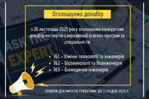 Запрошуємо науково-педагогічних/наукових працівників закладів вищої освіти, наукових установ України та зарубіжних країн долучитися до участі в конкурсному донаборі.
