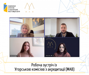 05 березня відбулася робоча зустріч Національного агентства із Угорською комісією з акредитації (Hungarian Accreditation Committee, MAB).