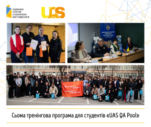 3 квітня відбулася сьома зустріч тренінгової програми “UAS QA Pool”, яка об’єднує активних студентів, зацікавлених у питаннях та процедурах забезпечення якості вищої освіти, а також ролі студентів у Європейському просторі вищої освіти. Тренінгова програма була організована Українською асоціацією студентів у співпраці з Національним агентством на базі Донецького державного університету внутрішніх справ у місті Кропивницькому. У зустрічі взяло участь понад 60 учасників з усієї України.